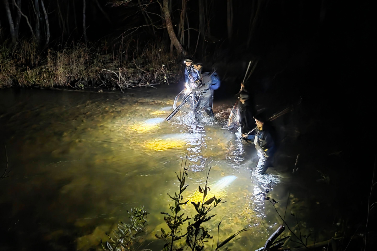 Lysfiske for å telle laks og sjøørret. Foto: Øyvind Solem, NINA