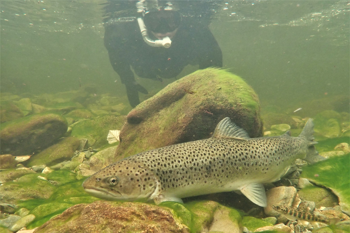 Telling av sjøørret i Steinsdalselva i Hardanger, ett av vassdragene som omfattes av overvåkingen av gytefisk. Foto: Helge Skoglund, NORCE