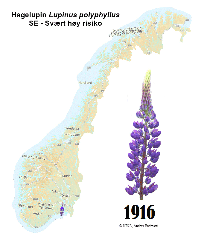 Animasjonen viser hvordan hagelupin har spredt seg i Norge fra 1916 og fram til 2020. Det understreker at tiltak må settes inn tidlig for at man skal ha noe som helst mulighet for å bekjempe fremmede arter.