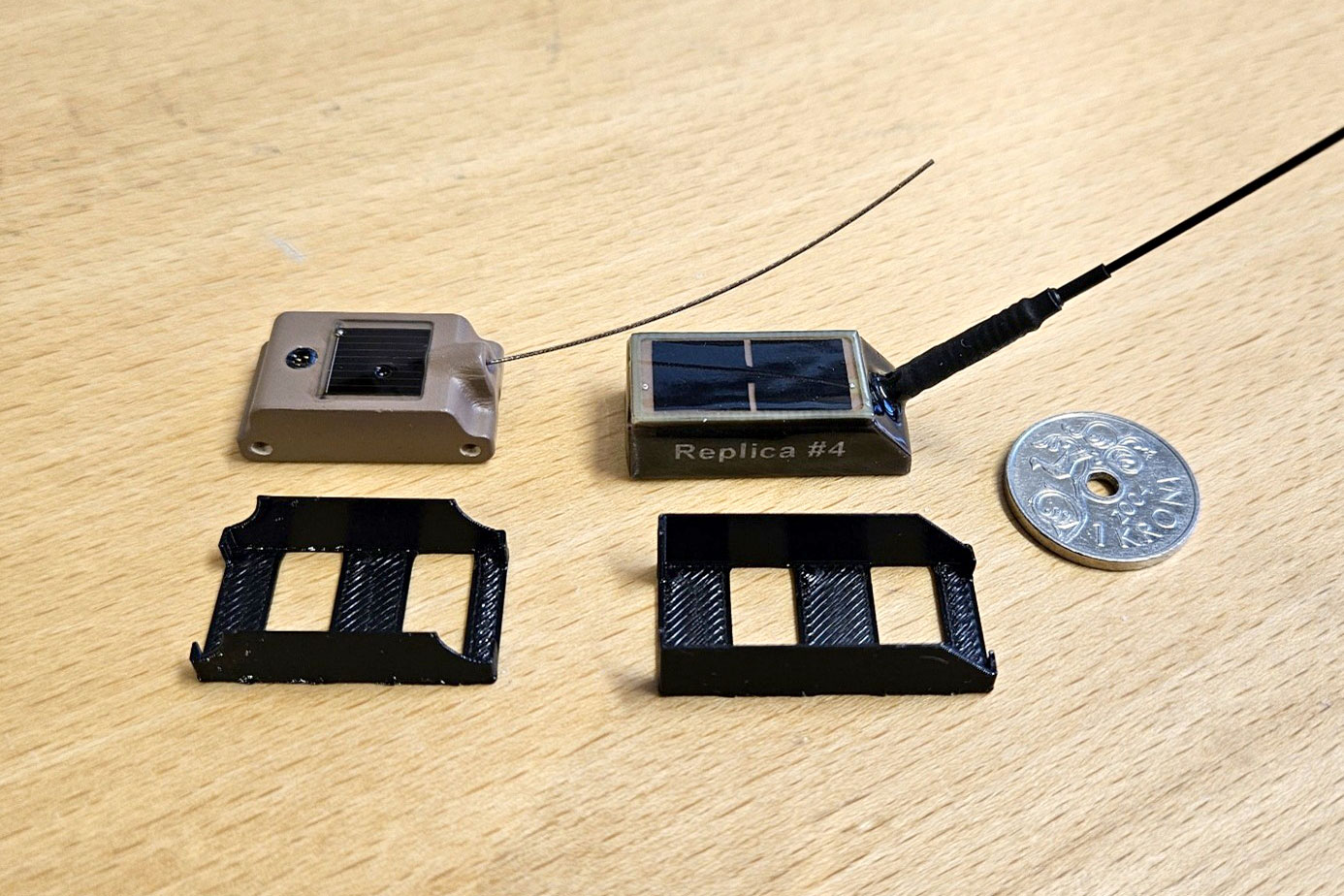To modeller av det nyutviklede festesystemet ved siden av GPS-modellene de er tilpasset for. Foto © Erlend Lorentzen