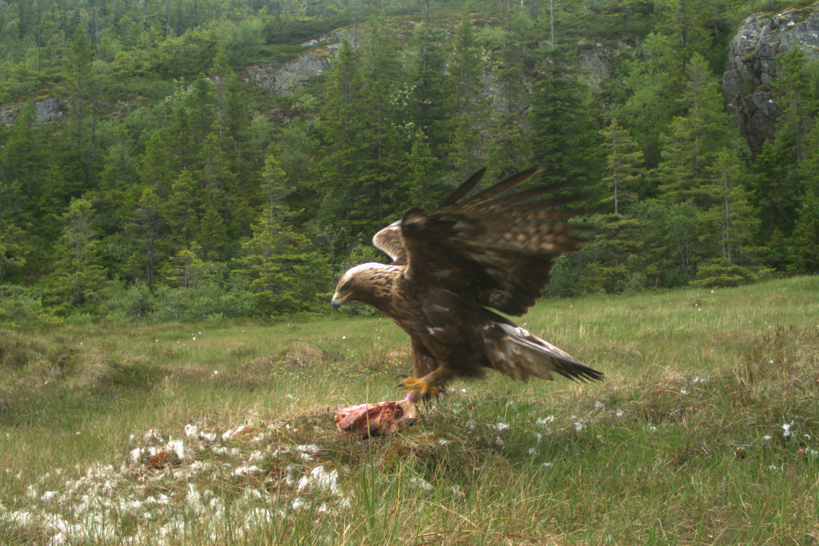 - Overvåking av aktive territorier, viltkamera på plasser med døde lam, innsamling av ørnefjær til genetisk analyse, GPS-merking av kongeørn og havørn.